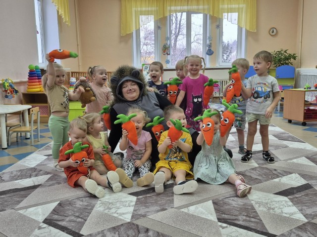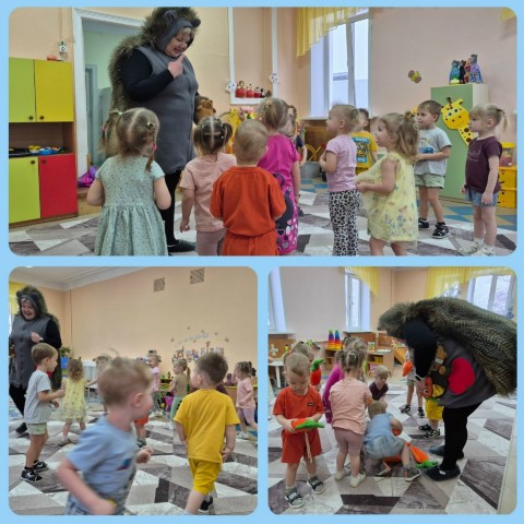 Ребята были рады встрече с пушистым гостем — настоящим ёжиком, который пришёл поиграть и потанцевать вместе с детьми.
