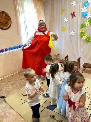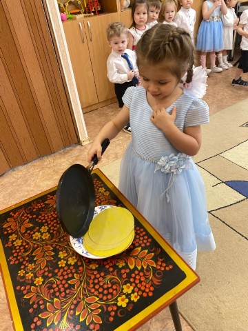 И наконец, заключительным пунктом нашего увлекательного маршрута стала Игровая станция, куда заглянула сама русская красавица Матрёшка! Вместе с ней ребята активно подвигались, испекли ароматные блинчики и устроили весёлую пляску с ложечками, наполняя пространство звонким смехом и восторгом.
