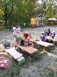 Каждая прогулка это время для самостоятельных игр и развития у детей детской инициативы и творчества. На прогулках дети любят играть в "Дочки-матери", наряжают своих кукол, ходят друг к другу в гости. Очень интересно наблюдать за игрой , стоит лишь подать сюжет игры. Так же на прогулке ребята любят лепить, особенно после того как они узнали что из пластилина можно слепить посуду, мебель, сладости и даже маленьких кукол, мальчики любят больше лепить роботов.