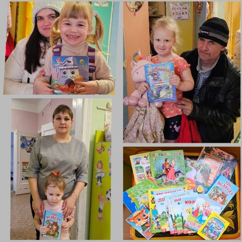 Условия акции: принести в подарок книгу для детей (для рассматривания детям или для чтения детям взрослыми, детская книга должна быть с четкими, яркими, доступными пониманию ребенка, иллюстрациями и должна соответствовать возрасту детей). Большинство родителей с радостью откликнулись на акцию. Некоторые из родителей принесли не одну, а несколько книг и в большинстве случаев, это новые книги. Наша групповая мини библиотека пополнилась! Дети с огромным интересом рассматривают книги и иллюстрации, а мы, в свою очередь, с удовольствием читаем их. Продолжаем знакомить с творчеством писателей и художников. Собрали детскую библиотеку, произведения разного содержания, разных жанров, познавательную литературу.